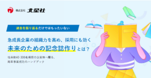 採用にも効く「未来のための記念誌」作りとは? 会社の周年という節目のタイミングに「記念誌づくり」という方法で社員の帰属意識をアップさせませんか? 自社の強みを形にし、その後の採用活動にも繋げるプロセスを解説しています。 資料ダウンロードする
